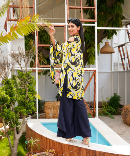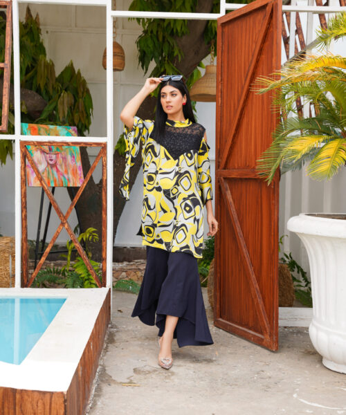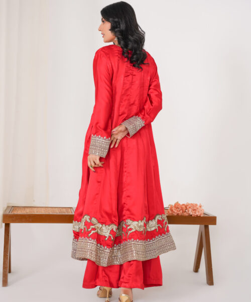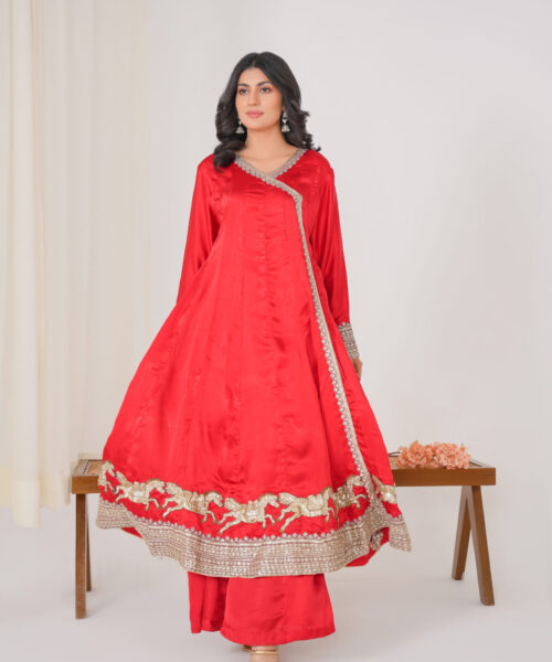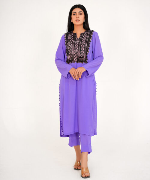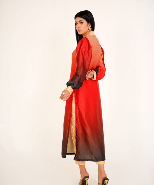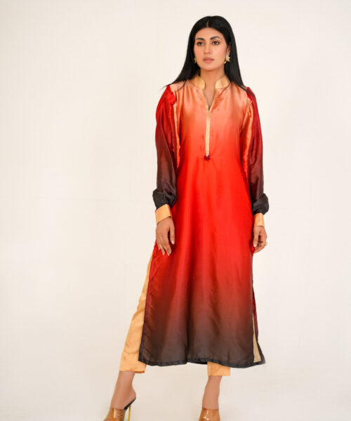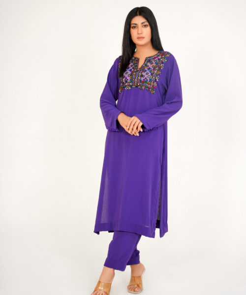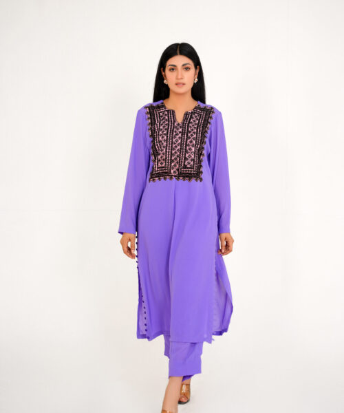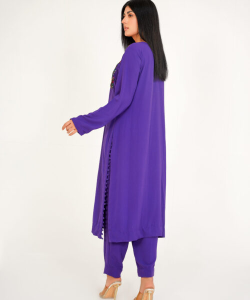 This one-piece black chickankari kaftan embodies elegance and sophistication. The neckline is adorned with intricate dabka work, while a peacock dabka motif adds a touch of regal charm. Crafted from luxurious chickankari fabric, this kaftan seamlessly blends tradition and modernity, making it a truly unique and stylish piece. Embrace the allure of this exquisite garment, a testament to refined taste and timeless style.